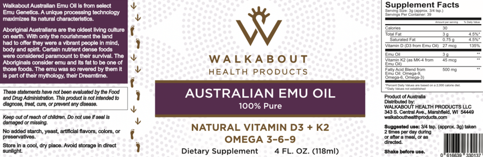 Walkabout Australian Emu Oil is the gold standard for emu oil. View Label or